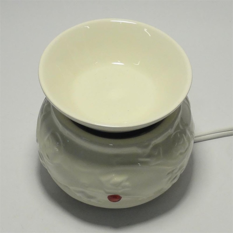 Flat Low Profile Style Glossy Finish Ceramic White Decorative Ivy Vines Aroma Warmer for Gel Melts™ & Other Waxes