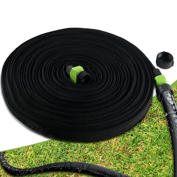 Flat Soaker Hose - 150FT Save 80% Water Drip Garden Hose -Thickened Heavy Duty Double Layer Drip Flexible Leakproof, Drip Watering Hose for Garden Beds and Lawns