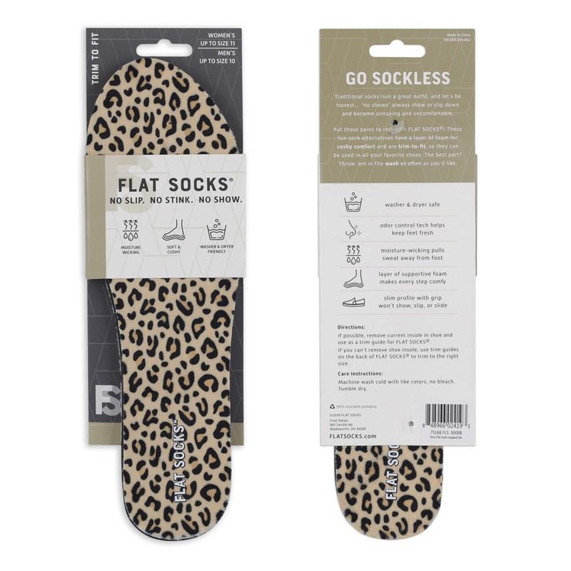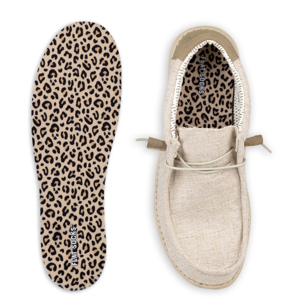 FLAT SOCKS FLAT SOCKS No Show Socks, Sockless Liner, No Slipping, No Stinking, Washable Barefoot Shoe Insert, Animal Print, Leopard, Small