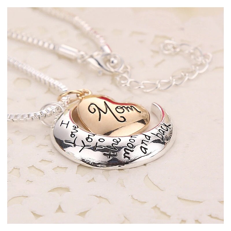 Perfect Mother's day gift. MOM crescent heart pendent silver/gold color necklace. Specifications