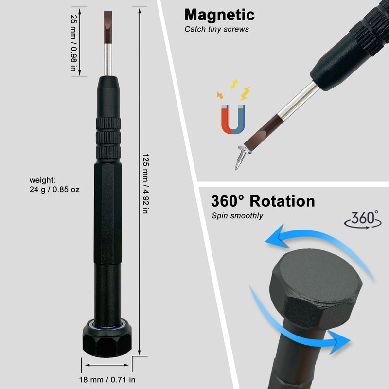 Flathead Screwdriver 3.0mm, Precision Slotted Screwdriver -3.0mm Flat Head, Magnetic, Lightweight, S2 High Alloy Steel Flat Blade, Smooth Turning Cap