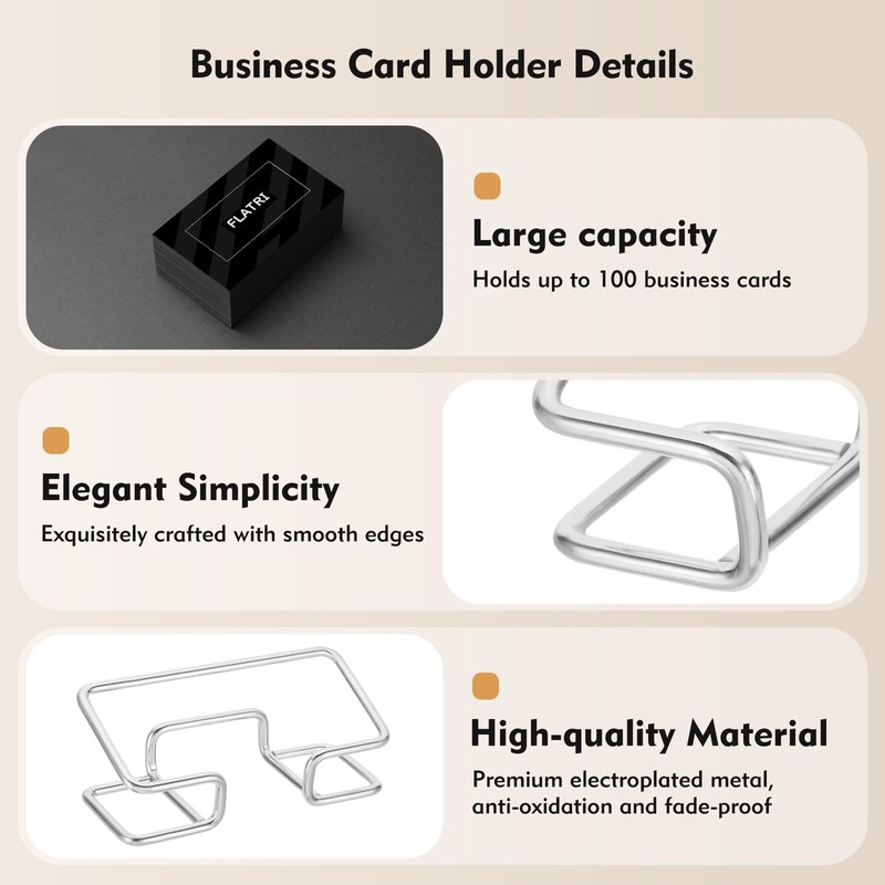 FLATRI Business Card Holder for Desk, Silver Modern Business Card Organizer, Desktop Business Card Holder for Office Reception Event Conference Room Desktop