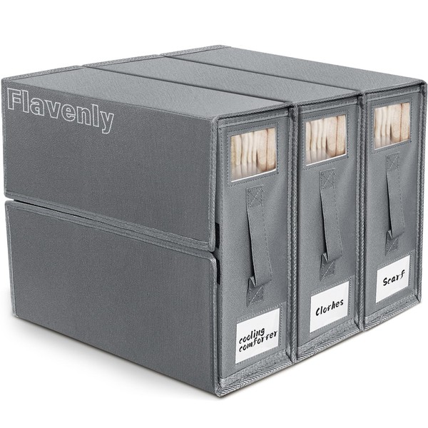 Flavenly Bed Sheet Organizer, Collapsible Sheet Organizer with Viewable Window Large Capacity Organizer. Suitable for Blankets, Comforter Sets, Duvets and Towels and Clothes. (3(Grey)