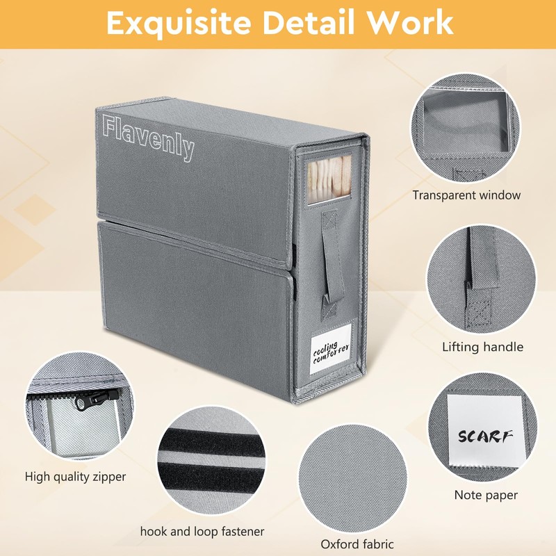 - SHEET ORGANIZER: Our Flavenly sheet organizer features a fully sealed design with zipper so sheets can be protected from superior dust, and a two-way zipper for faster opening or closing. And it is easy to operate, three-step efficient storage, avoiding repeated folding and long time rummaging, saving time and energy,Release more storage space.