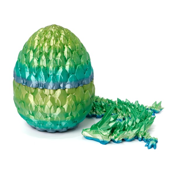 Flavery Dragon Egg - 12 inch Dragon in Egg, Easter Egg, 3D Printed Flexible Dragon Fidget Toy, Dragon Collection, Figure Decor(Green Mix Blue)