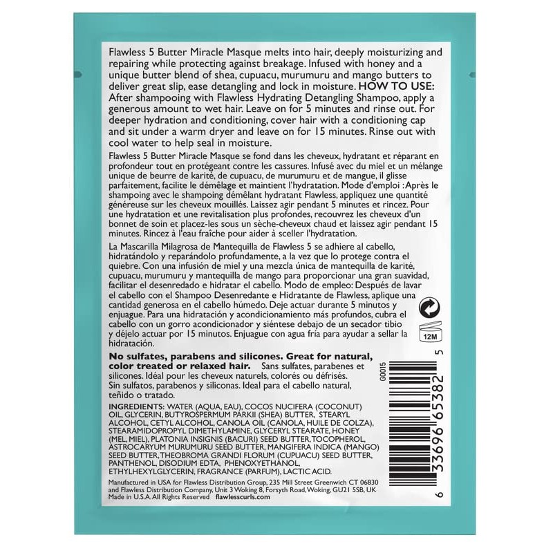 Flawless 5 Butter Masque melts into hair, deeply moisturizing and repairing while protecting against breakage. Infused with a unique butter blend of shea, cupuacu, murumuru and mango butters to deliver great slip, ease detangling and lock in moisture. No sulfates, parabens, and silicones. Great for natural, color treated, or relaxed hair.