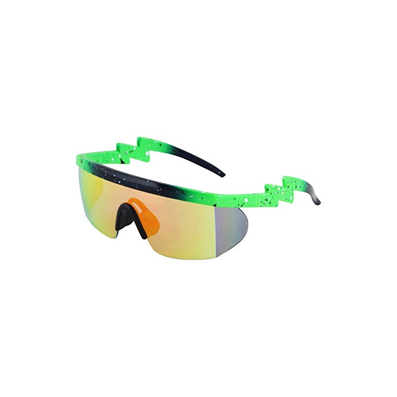 The HOTTEST MOST FASHIONABLE FUTURISTIC SUNGLASSES by Flawless Eyewear Having prismatic sunglasses is not as permanent as purple or lime green hair, but who sees you when you sleep, anyway? Whether you're walking the beach or boardwalk, throwing a frisbee, playing golf, attending a costume or Halloween party, or something as mundane as mowing the lawn you will LOOK GOOD! Cateye glasses are quite common nowadays, along with standard round, rectangle, oval and square frames. Be a trendsetter in your circle of friends and wear the most glasses in the group. The oversized lens that wraps around the side of your eyes stops the sun in its tracks. Go with the pink lens and plead guilty to always seeing the world through rose-colored glasses. Men are wearing pink glasses too! We're no longer hindered by gender. Get the green, blue, yellow, black, purple, rainbow...whatever suits your fancy. Or keep them guessing with a mirrored lens. These Retro Oversized Shield Shades Sunglasses Feature A Single Piece Lens. These Vintage Style Sport Sunglasses suitable for Women and Men Clear Frame and Blue Mirrored Lens. Arms Are Constructed Of Durable Thick Plastic. Please Note They Are Non-Polarized it's Semi rimless style mirrored lens sunglasses for men and women. Plastic ZigZag Frame with 100% UV400 Protection. Perfect for summer sunglasses. Awesome Retro Futuristic Sunglasses