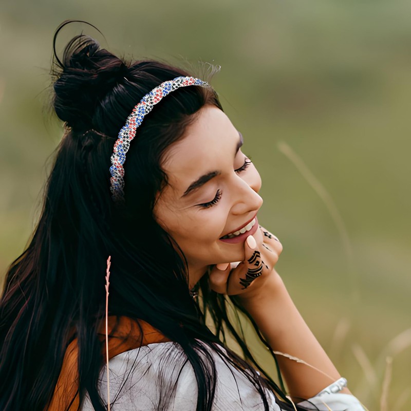 Flayem Women's Head Chain Shiny Elastic Rhinestone Headband (Red Blue Black, 45.5 cm)