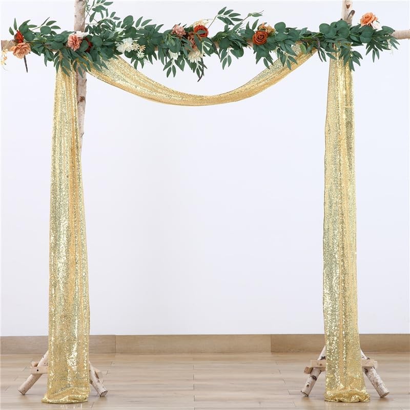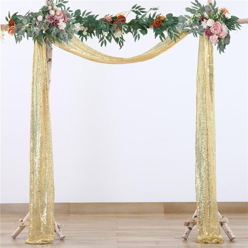 FLCSIed 2PCS/Pack Wedding Arch Draping Fabric, 2 Panel 12" x20ft Gold Sequin Fabric Drapes Arbor Backdrop Curtain for Wedding Arch Ceremony Bridal Shower Reception (Light Gold)