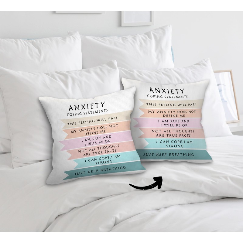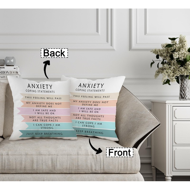 FLDAS Anxiety Coping Statements Decorative Double-Sided Throw Pillow Covers 18×18 Inch, School Counseling Pillow Cases Cushion for Bedroom Living Room, Mental Health Therapy Women Men Kids Gifts