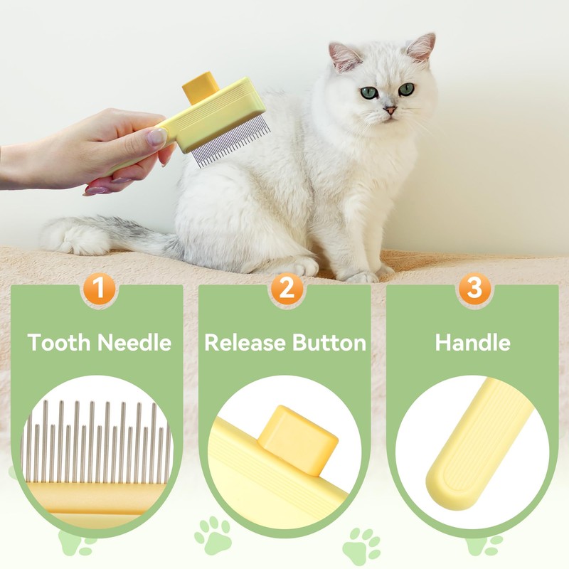 - 【One click self-cleaning】: When you need to clean pet hair on your comb, just press the button to make your comb clean, and it's easy to operate with one hand. Flea &Lice combs is smooth without sharp edge,which do not hurt your dogs and cats.