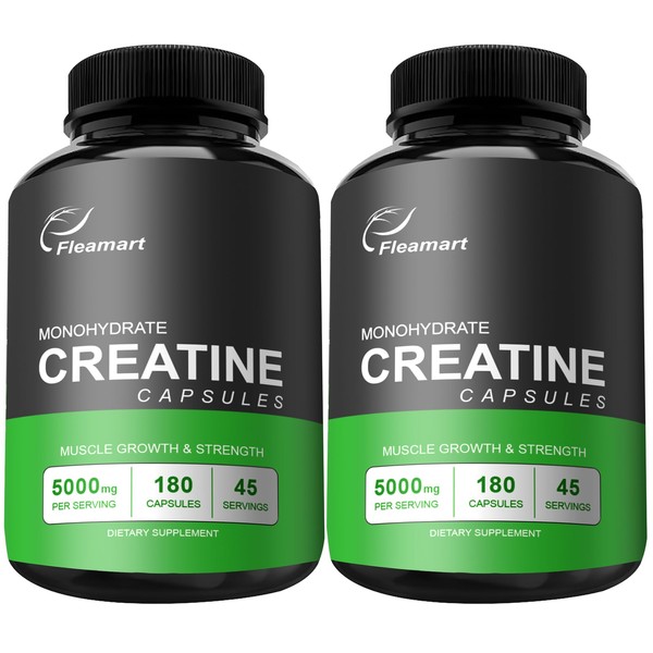 Fleamart Creatine Monohydrate Capsules 5000mg, 180 Capsules, 2 Packs