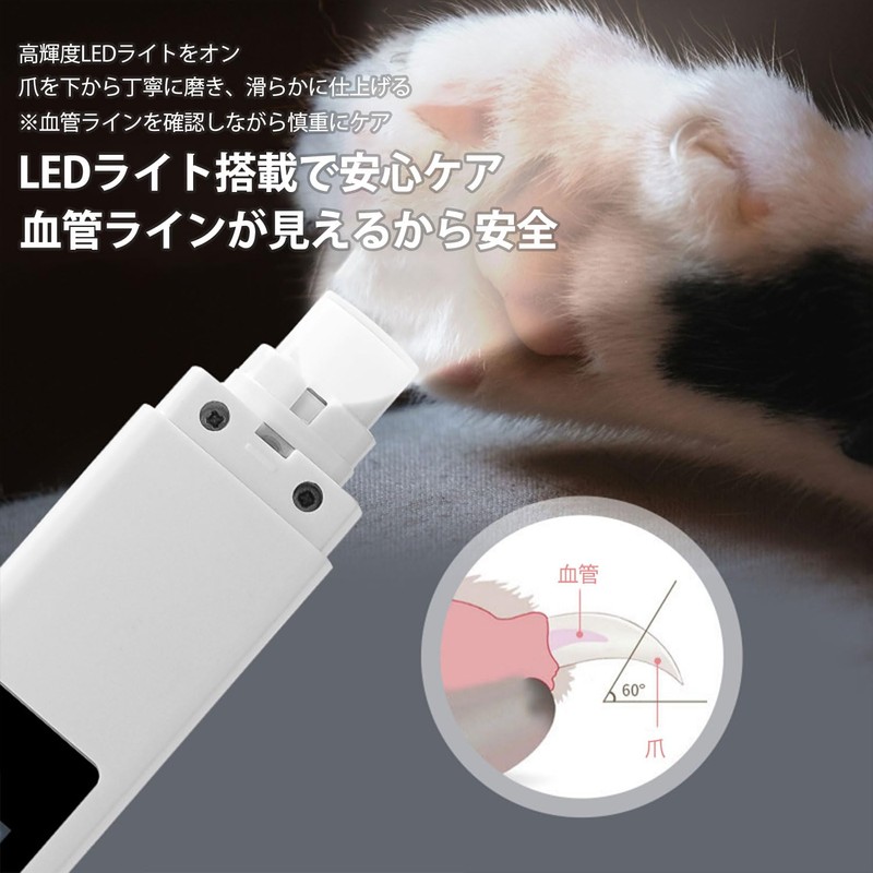 - 4 kinds of ports design & convenient LED lights: You can choose the right grinding surface for each pet, such as small, medium and large dogs and cats. Equipped with an LED light, you can safely care while checking the vessel position of your nail. In addition, the bottom of the unit is equipped with a ring worm check light for cats and a laser pointer. This is a great value item that combines multi-function functionality with one item