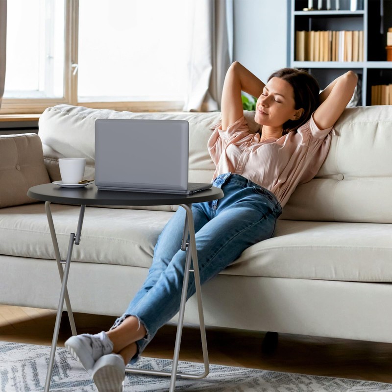 - ROUND TV TRAY:TV tray is practical and does not define the use scenario,TV dinner tray, snack table tray, folding table, snack tray table coffee table tray,bedside table for living room bedroom.Size:17.6*17.6*26 in.
