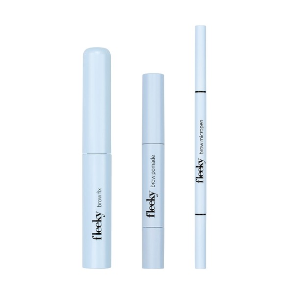 fleeky Eyebrow Set Brow Fix, Pomade & Micropen 3-in-1 - Perfect Shape Shading Filling & Definition for Natural Smudge-proof Results (Dark Brown)
