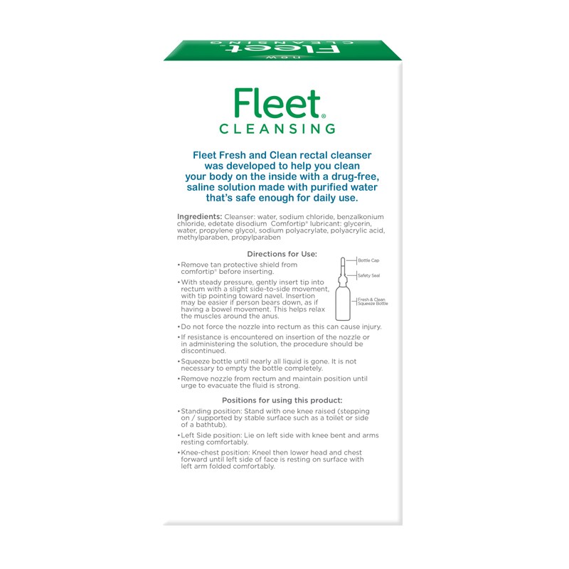 • Fleet Fresh & Clean Rectal Cleanser quickly and gently cleanses the rectum in a single use