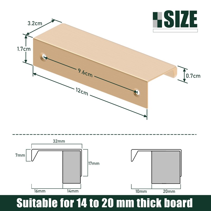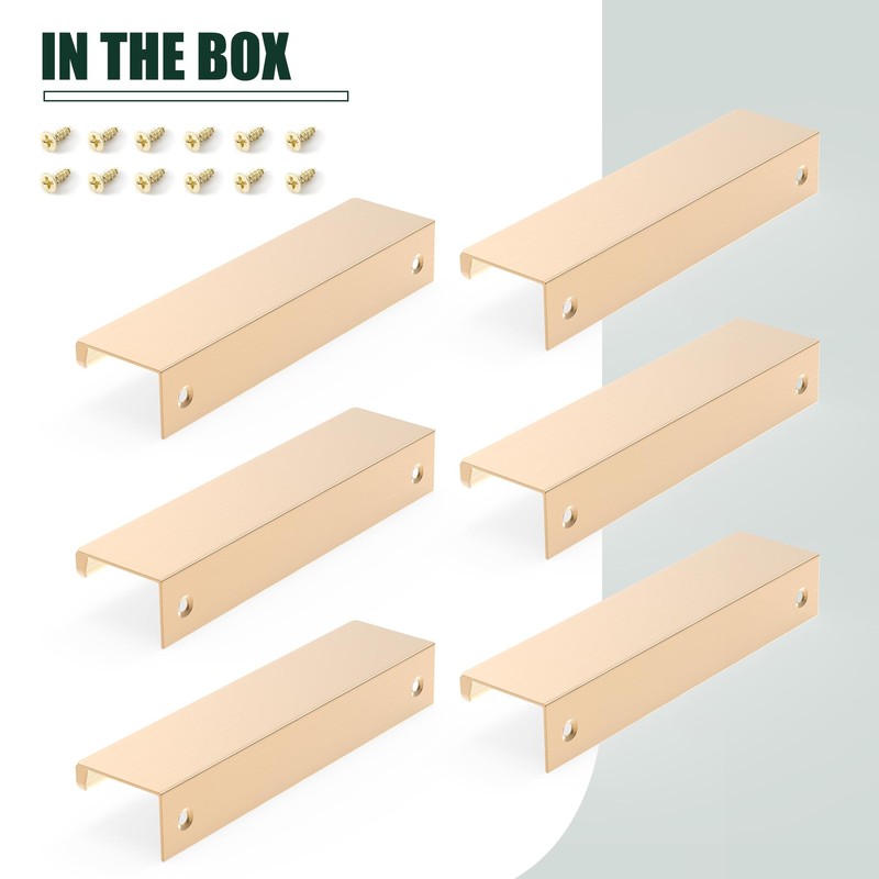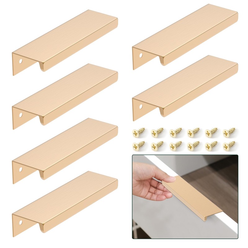 - 【Edge Finger Pulls for Cabinets】Our gold finger edge pull cabinet handles is measured 120 mm in length and the hole distance is 96 mm. Including 6pcs finger pull handle and 12pcs screws, meet most of the needs