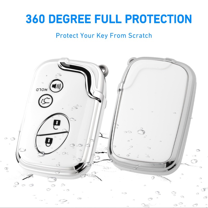 Flensent Key Fob Cover with Keychain for Lexus RX350 RX450 GX460 LX570 CT200h 2009-2015 (White)