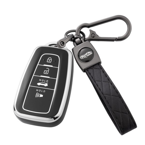 Flensent Key Fob Cover with Keychain for Toyota Highlander RAV4 Camry Avalon C-HR Corolla GT86 2018-2025 (Black)