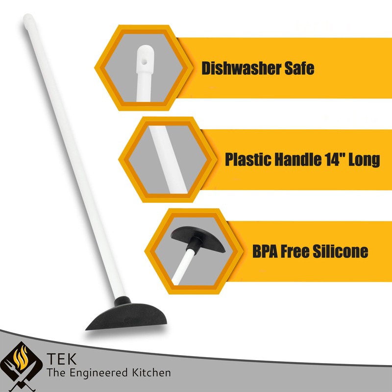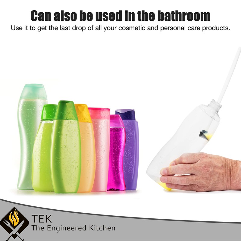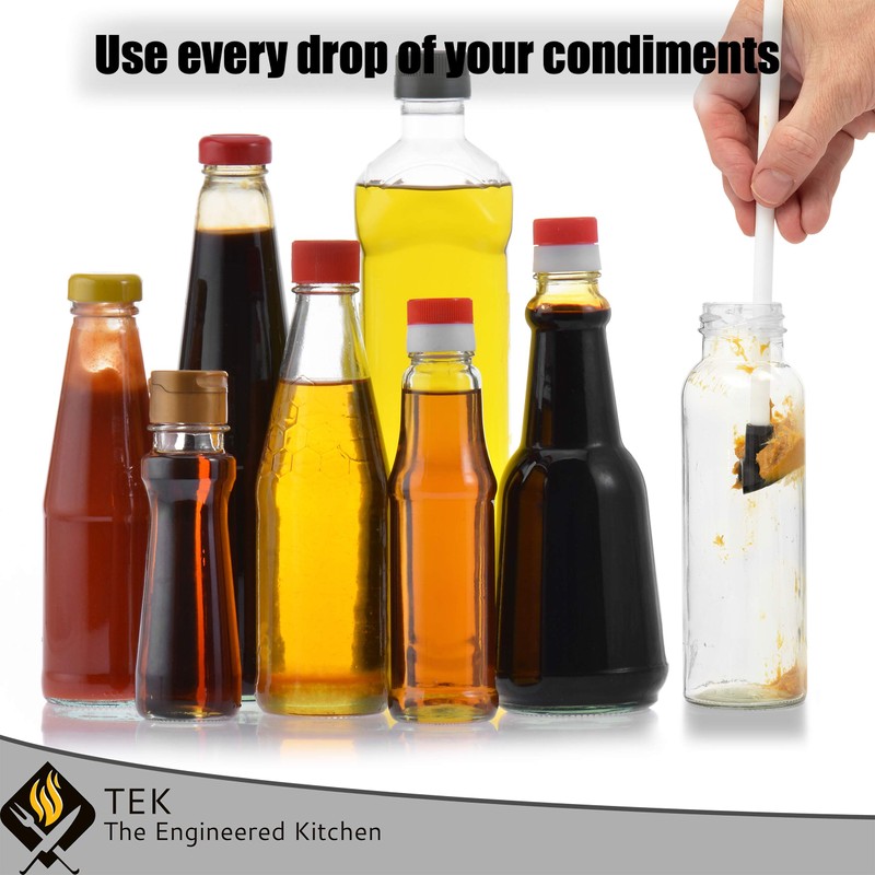 - GET TO THE BOTTOM OF THE ISSUE WITH THE ENGINEERED KITCHEN'S SCRAPER SPATULA- We're all guilty of throwing out a shampoo bottle or condiments jar knowing there's still a bit left in there. Now you can simply scrape up the last bits of sauce or lotion that's all the way at the bottom or sides.