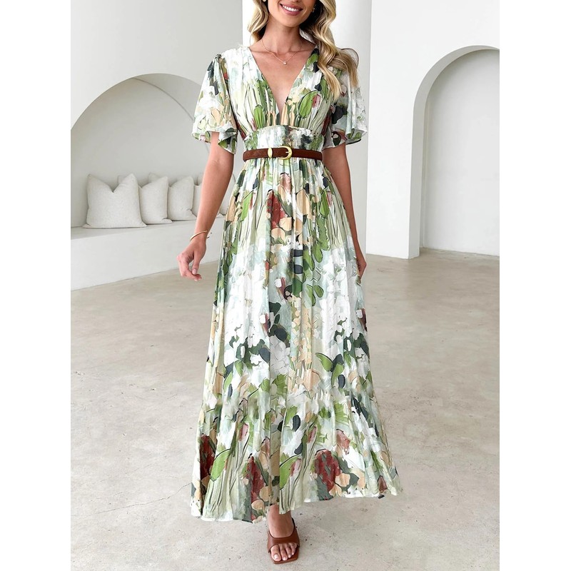 - TRENDY DETAILS: This boho summer dress features a stylish v neck, creating an elegant look. Adorned with printed patterns, women swing dress adds a touch of femininity and natural beauty to your overall appearance. Flowy flutter sleeve and high waist design with a-line hem style, making you more flattering!