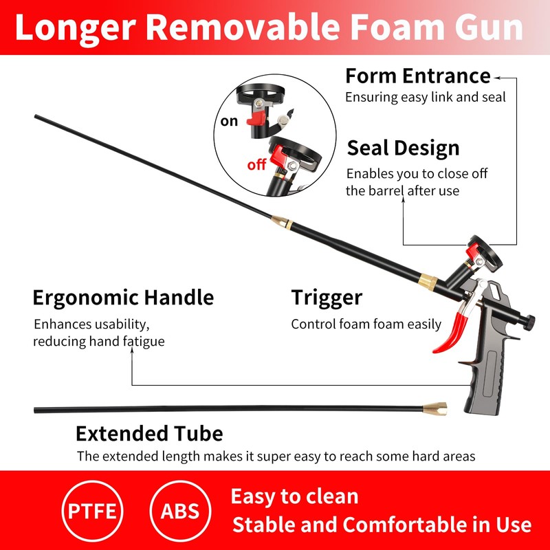 Fletrix Spray Foam Gun 25 Inch Extended Detachable Design, Heavy Duty Non-stick Coated Metal Foaming Caulking Gun Expanding PU Spray Applcation for Gap Caulking, Filling, Sealing, Insulating