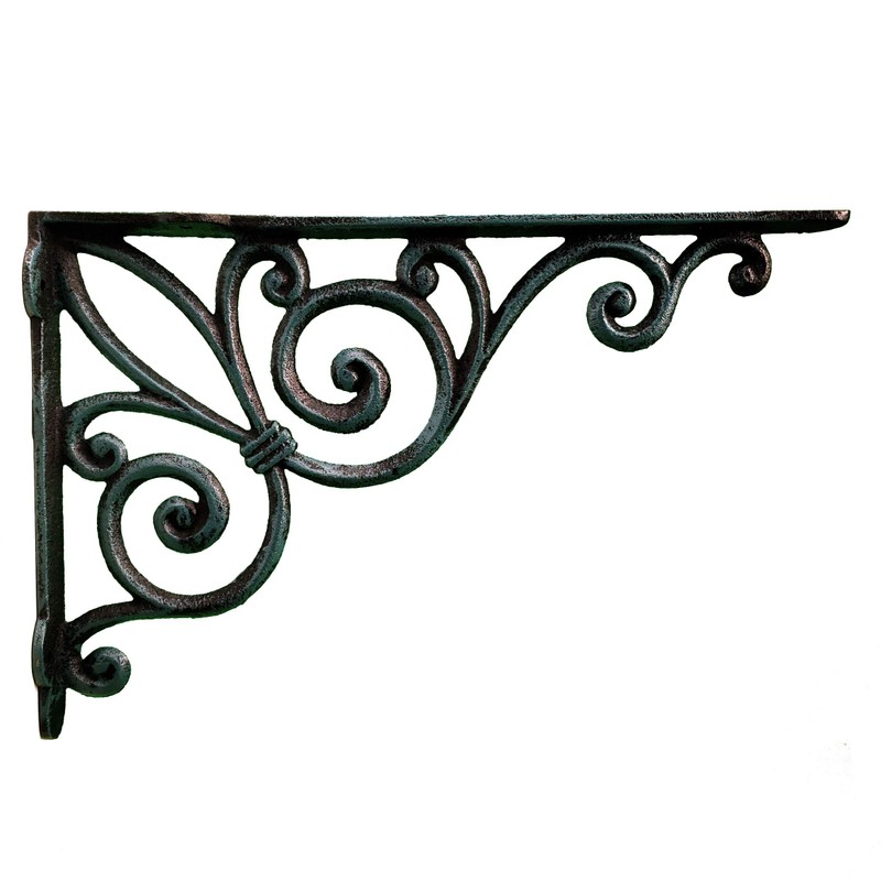 Fleur de Lis Verdigris Cast Iron Wall Shelf Bracket with Ribbon 29.5cm Deep