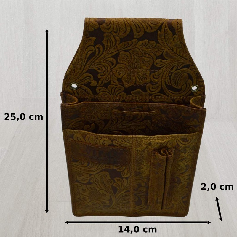 flevado Gastronomy Waiter Set Suede Leather with Lilian Pattern in Set or Individually in Brown, brown, Waiter's bag