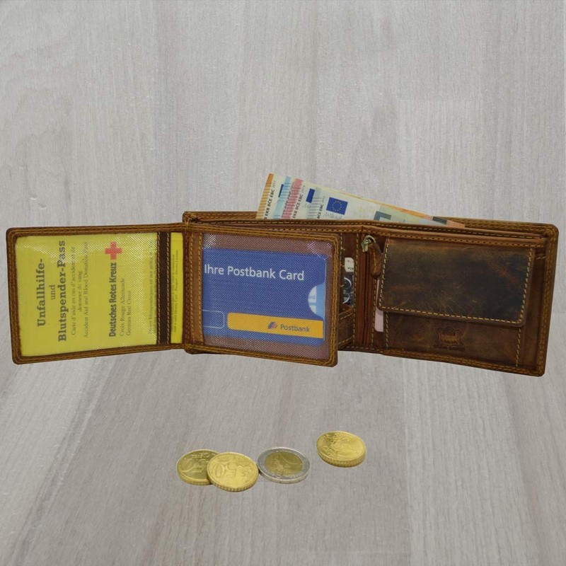 flevado RFID Protection Men's Wallet with Buffalo / Bull Embossing Genuine Leather, brown, Modern