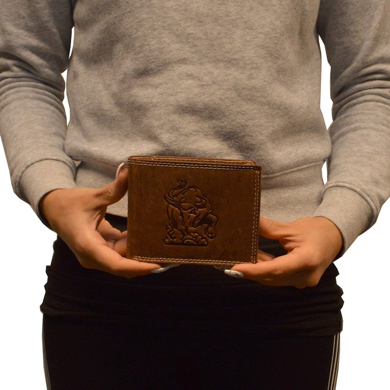 • Men's leather wallet with RFID NFC protection. Full leather wallet buffalo / bull embossing.