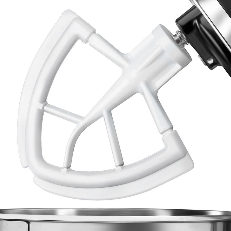 - FEATURE:Flex Edge Beater Is Made Of Non-Stick Coated Metal Construction And Flexible Silicone Edges For Heavy Duty And High Durability. This Beater Blade Can Continuously Beats, Scrapes And Mixes Ingredient Side And Bottom Ensure Mixing Is Done Thoroughly Without Scratching Your Mixing Bowl And Cuts Mixing Time By As Much As 50%.No Need For An Extra Tool, The Flat Beater Can Also Double As a Spatula.