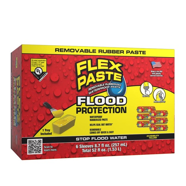 Flex Paste Flood Protection, Wrapped Sleeve, (6) 8.75 oz, Waterproof Rubberized Paste, Removable, Use on Windows, Doors, Garage Doors, Seams, Casings, Thresholds, Conduits, Vents, Ducts, and More