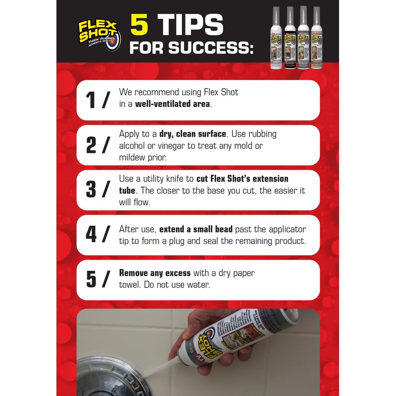 Flex Shot Rubber Adhesive Sealant Caulk, 8-oz, White | Flex Shot