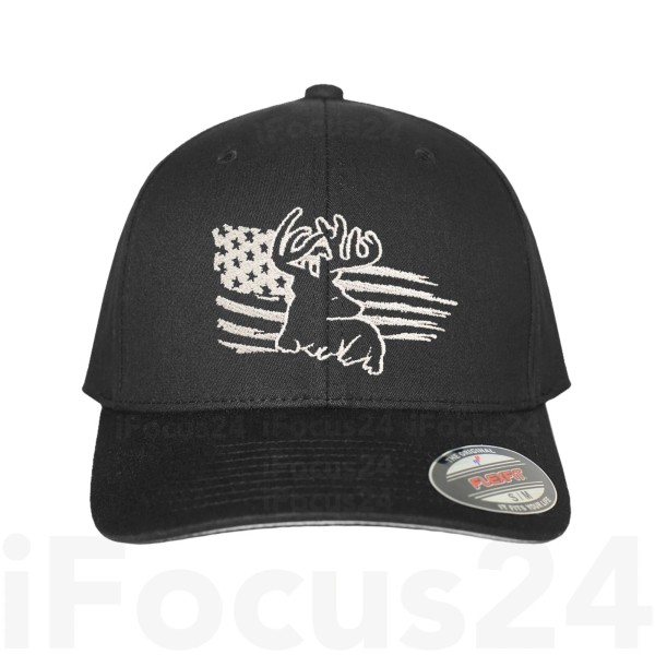 Flexfit Deer USA American Flag Fitted Flex Fit Hat Round Bill Baseball Dad's Hunter Gift - S/M