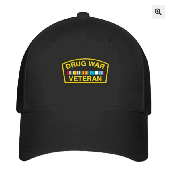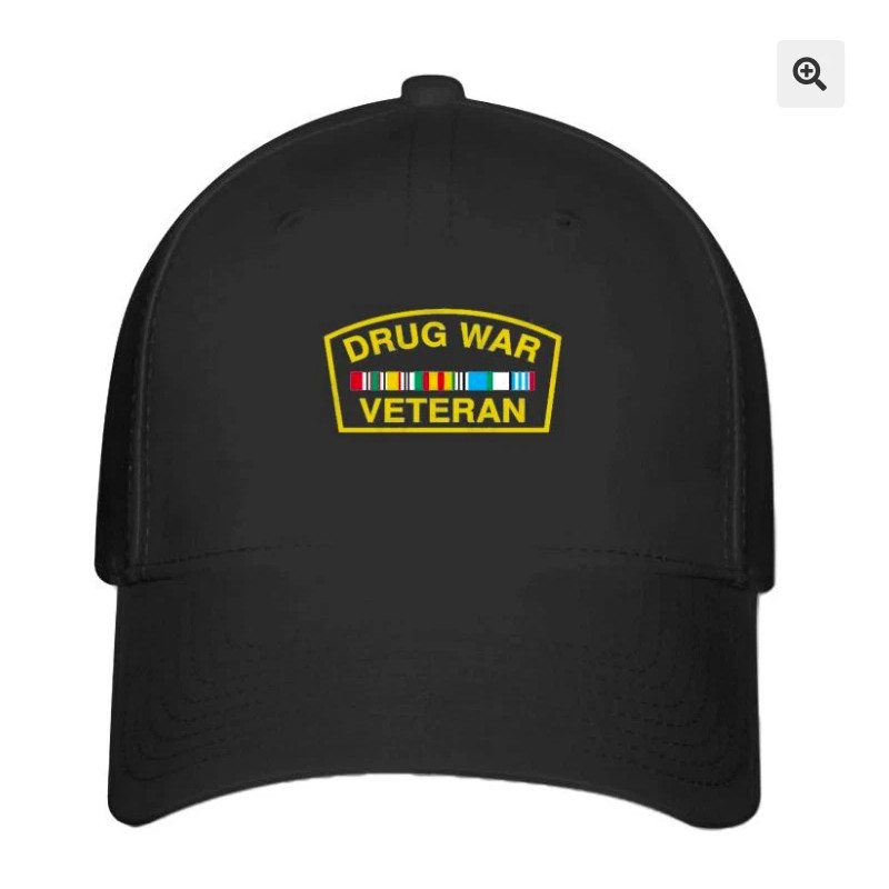 Flexfit Drug War Veteran logo Printed on Hat Black Baseball Cap L/XL