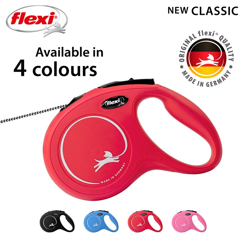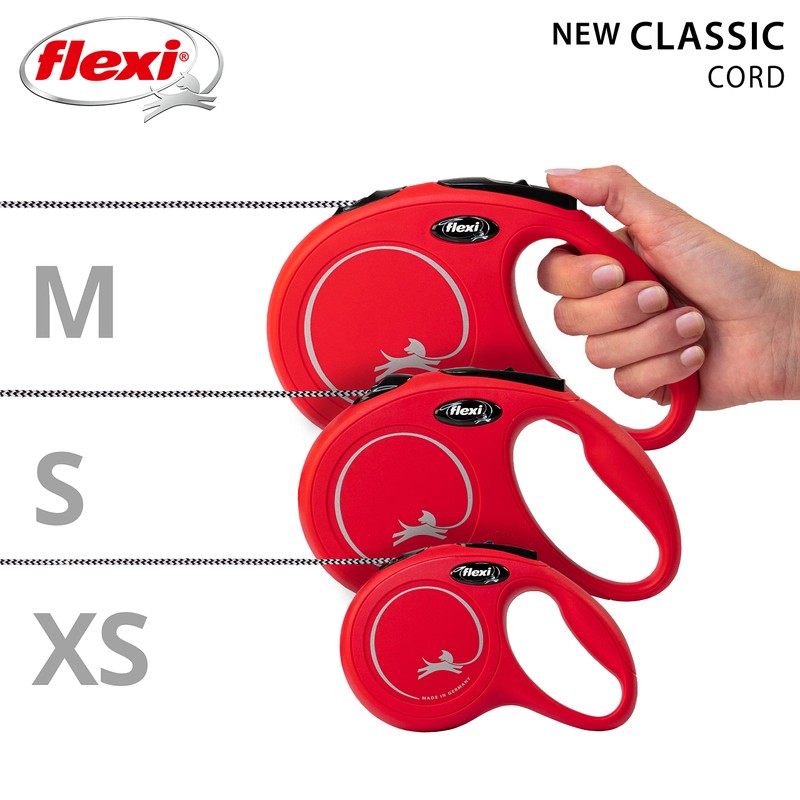Flexi New Classic Cord Red Medium 5m Retractable Dog Leash/Lead for dogs up to 20kgs/44lbs