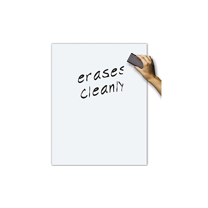Dry Erase Flexible Magnetic sheet will adhere to most steel metallic surface. You can write on them with a dry erase marker and easily clean them with a clean dry cloth or an eraser. Can be cut with regular pair of scissors into smaller pieces. UV resistant clear laminate for dry erasable applications. Material is bleed resistant and cleans easily with an eraser or soft cloth. For use with dry erase markers. Great for refrigerator notes, brainstorming, presentations, children's art work, school projects and more!