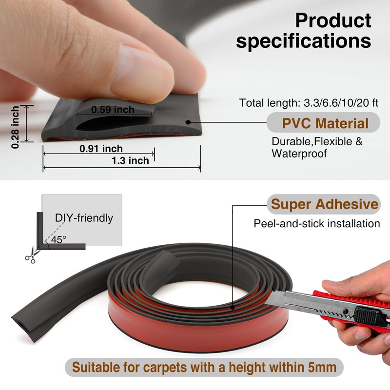 - 【Reliable Durability】Made from durable PVC, 1.10 inches wide. Soft, recyclable, stain-resistant remains flexible in cold. Easy-to-clean smooth surface. Suitable for high-traffic indoor/outdoor areas. Protects carpet edges, reduces tripping hazards