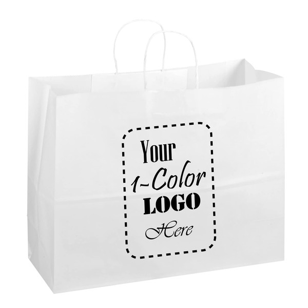 Flexicore Packaging White Kraft Custom Printed Paper Bags (16"x6"x12", 100)