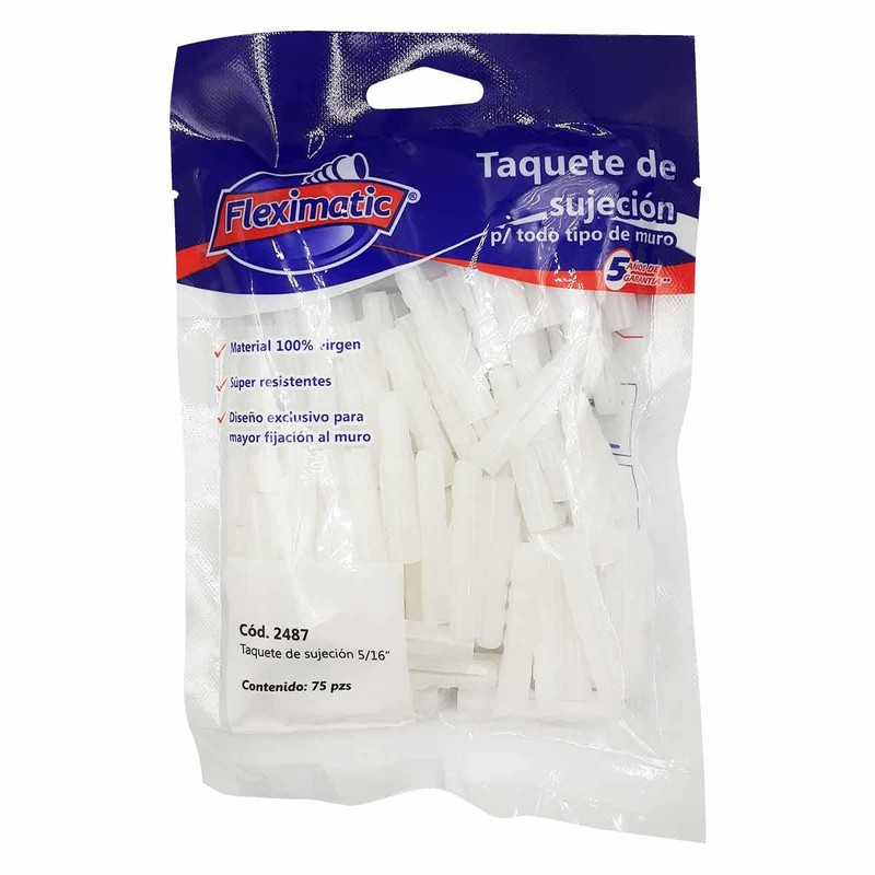 FLEXIMATIC Taquete Blanco De Sujecion 5/16 Alta Densidad Bolsa 75 Pzas