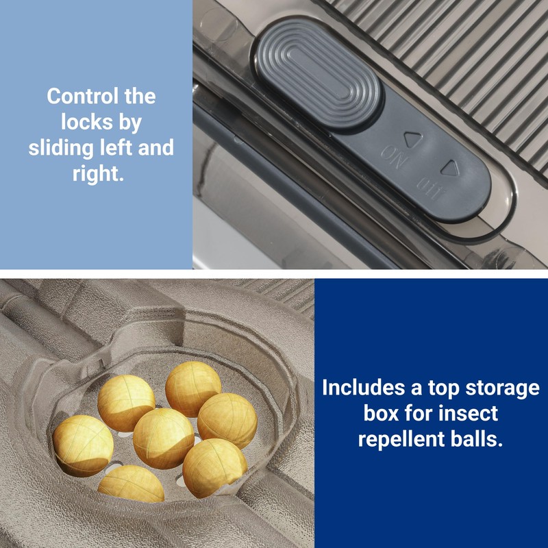 - PERFECT STORAGE PROTECTION: The under the bed storage bins fit seamlessly into tight spaces under your bed, sofa or wardrobe. The elevated design protects stored items from dust and dirt, and the insect proof bin at the bottom provides protection from moisture or pests.