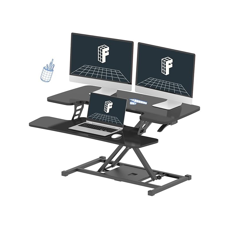 FLEXISPOT 36-inch Standing Desk Converter Height Adjustable Sit to Stand Up Workstation, Dual Monitor and Laptop Riser with Wide Keyboard Tray, Black