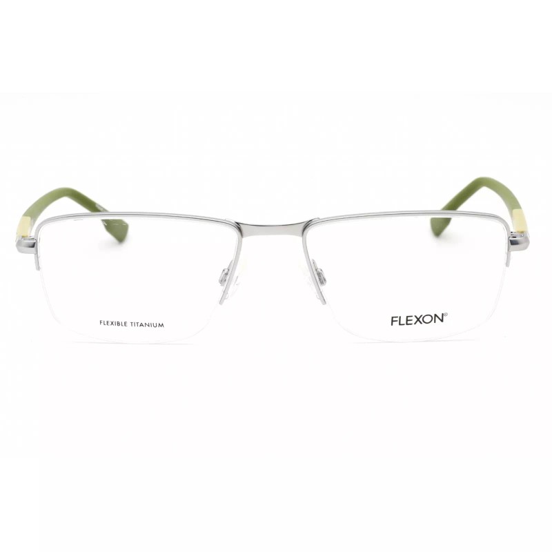 NEW FLEXON E1127 040 Matte Silver Titanium Eyeglasses w/Green Temples 53/17/145