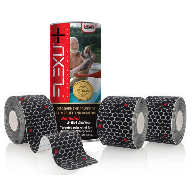 - Choose your most suitable adhesive formula (normal or milder) for your sensitive skin. TARGETED SUPPORT FOR ELDERLY CONDITIONS - Designed exclusively for seniors, Golden Agers FlexU Plus Kinesiology Tape provides targeted pain relief from common conditions such as arthritis, osteoporosis, rheumatism, tendonitis, myalgia, gout and bursitis, promoting improved mobility and comfort.