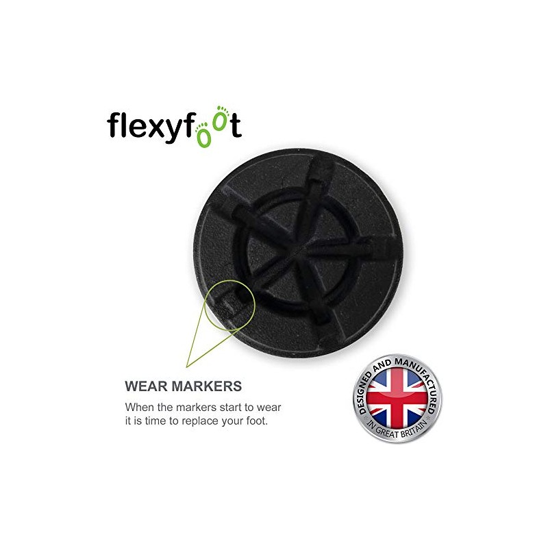 - The unique, patented design of the Flexyfoot ferrule creates a shock absorbing effect, reducing jarring from impact, which in turn helps to reduce pain and improve user comfort.