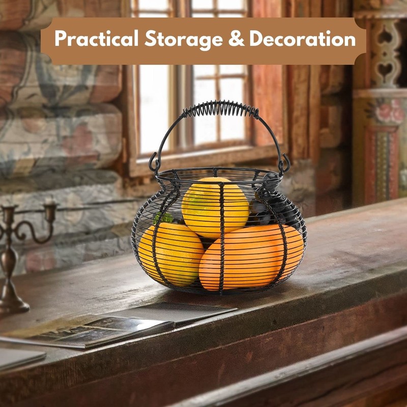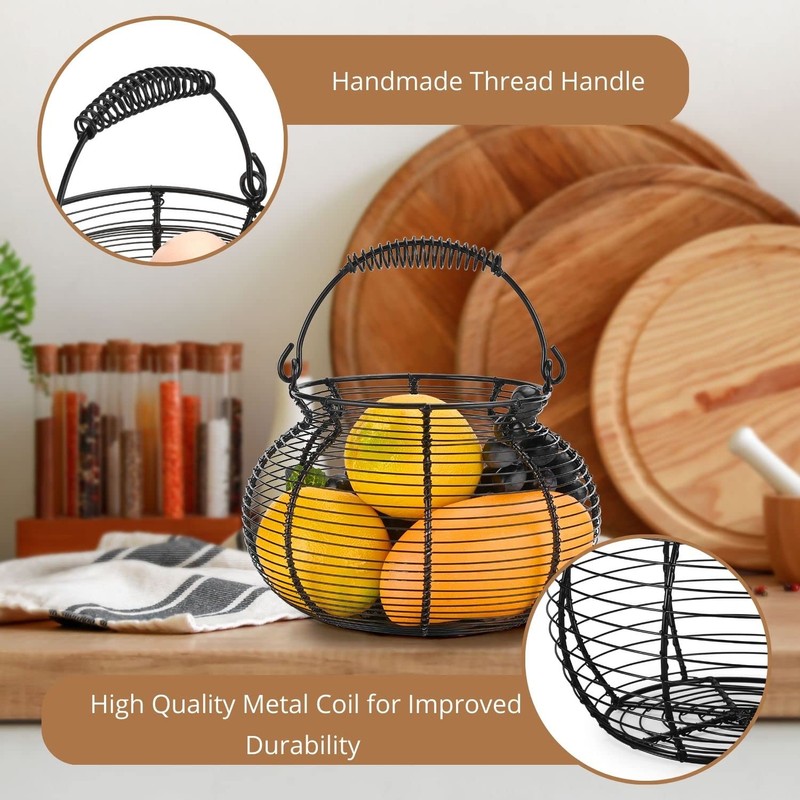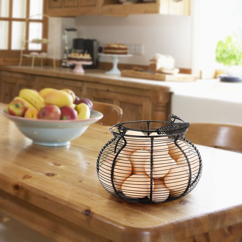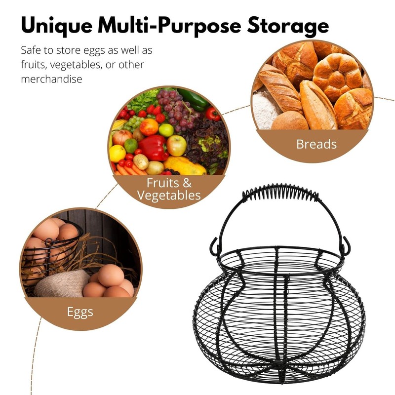 - 1 x Egg Collecting Basket Round Wire Basket Chicken Egg Holder Black Farmhouse Rustic Decorative Egg Storage, Chicken Egg Basket for Gathering Fresh Eggs, Fruits, and Vegetables, with Handle