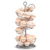 Flexzion Spiral Egg Rack for Fresh Eggs - Sturdy Silver Metal Egg Skelter Countertop Egg Holder with Bottom Basket and 360-Degree Rotatable Middle Pole Up to 36-Egg Capacity, Egg Storage Rack Solution