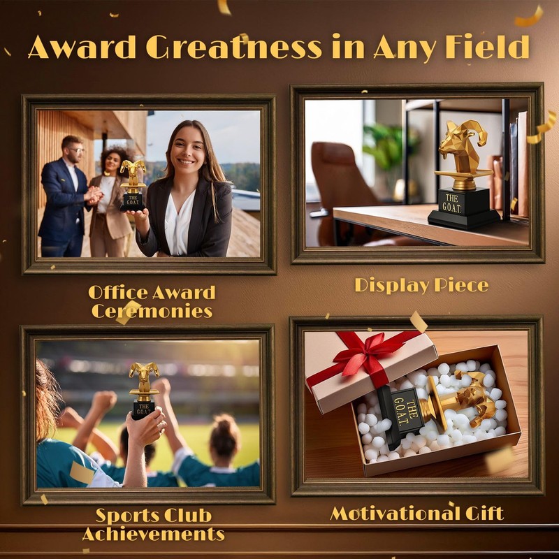 Whether it's an acknowledgement of being the star of the week, a nod to the one who crushes it in sales, or a fun take on your quirky group of friends, the Goat Trophy fits right in. It is a unique reminder of excellence, companionship and shared laughter.