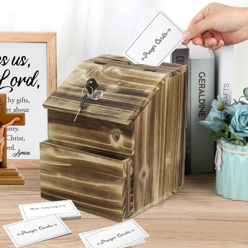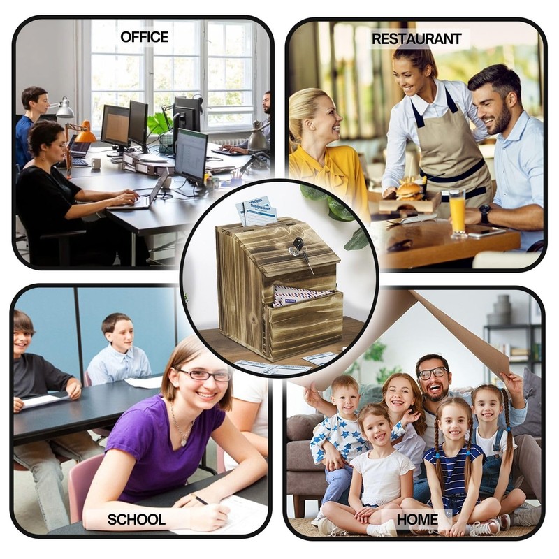 - Versatile Functioning Rustic Decor - This wooden key lock box can be used in the workplaces, offices, church, restaurants, schools, etc. Allowing consumers, workers, and members for making anonymous recommendations or remarks about a company or service