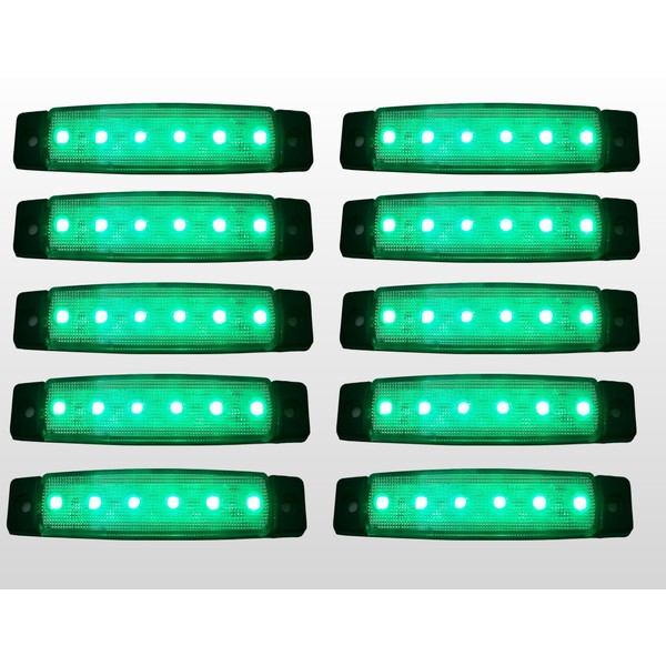 flexzon 10 PCs 6 Led Green Front Side Marker Light Position 12V Smd for Truck HGV Trailer Lorry Bus Cab Set of 10